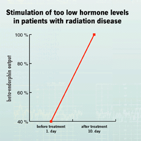 Regarding ACTH and cortisol, no significant changes were registered. Not so with beta endorphin: with each MRT-Music® treatment the output of the hormone got stimulated. After the 10th treatment the level had increased by 60% and reached its normal level.