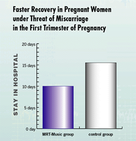 | For 8-10 days 15 patients received every day for 30-60 minutes a treatment with the Medical Resonance Therapy Music® via compact disc and headphone and received no other treatment. The patients of this group could leave the hospital successfully treated already after 9-11days – by 35% quicker than the patients in the control group |